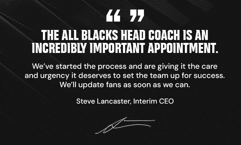 Según el comunicado oficial de Lancaster, el proceso comenzó con el llamado a entrenadores neozelandeses con experiencia en seleccionados nacionales para postularse al cargo.